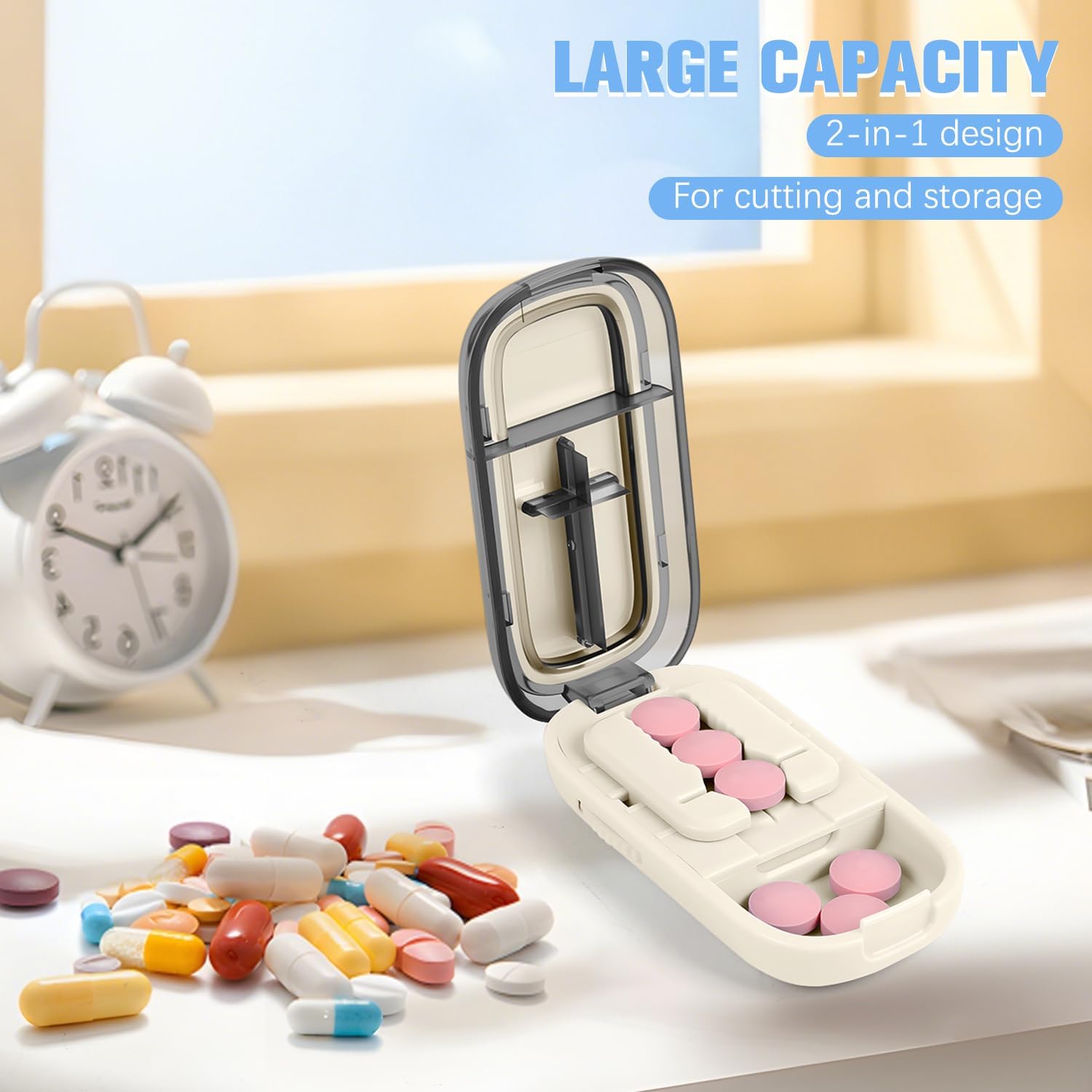 - Split Pills into 1/2, or 1/4 Sizes: This upgraded Pill Splitter offers advanced cutting slots that allow you to divide tablets into halves, or quarters with accuracy