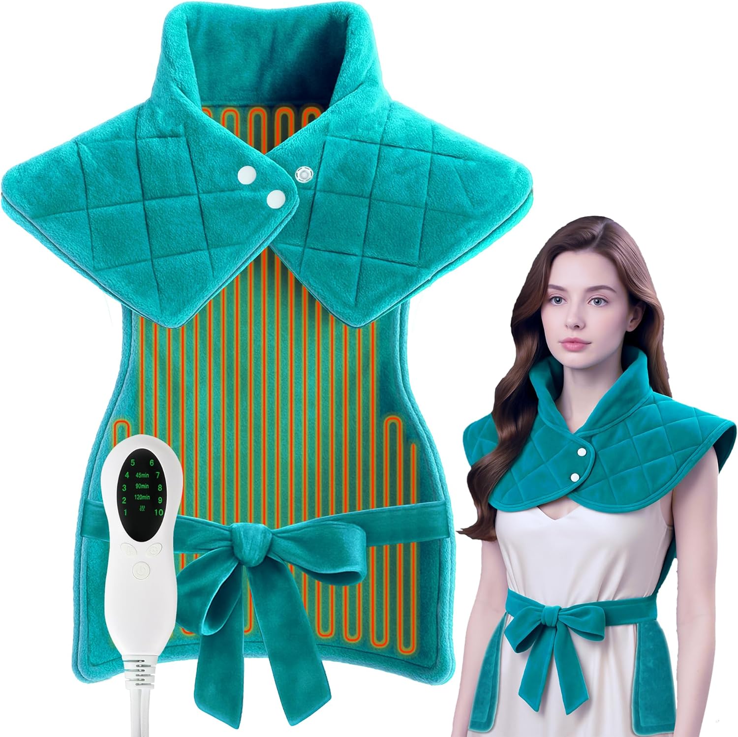 - TAILOR YOUR COMFORT WITH PRECISION:The heating pad shawl has 10 customizable heat levels + 3 smart timers for all-day relief,perfect for uninterrupted office work, postgym recovery, or nighttime use,no overheating risks