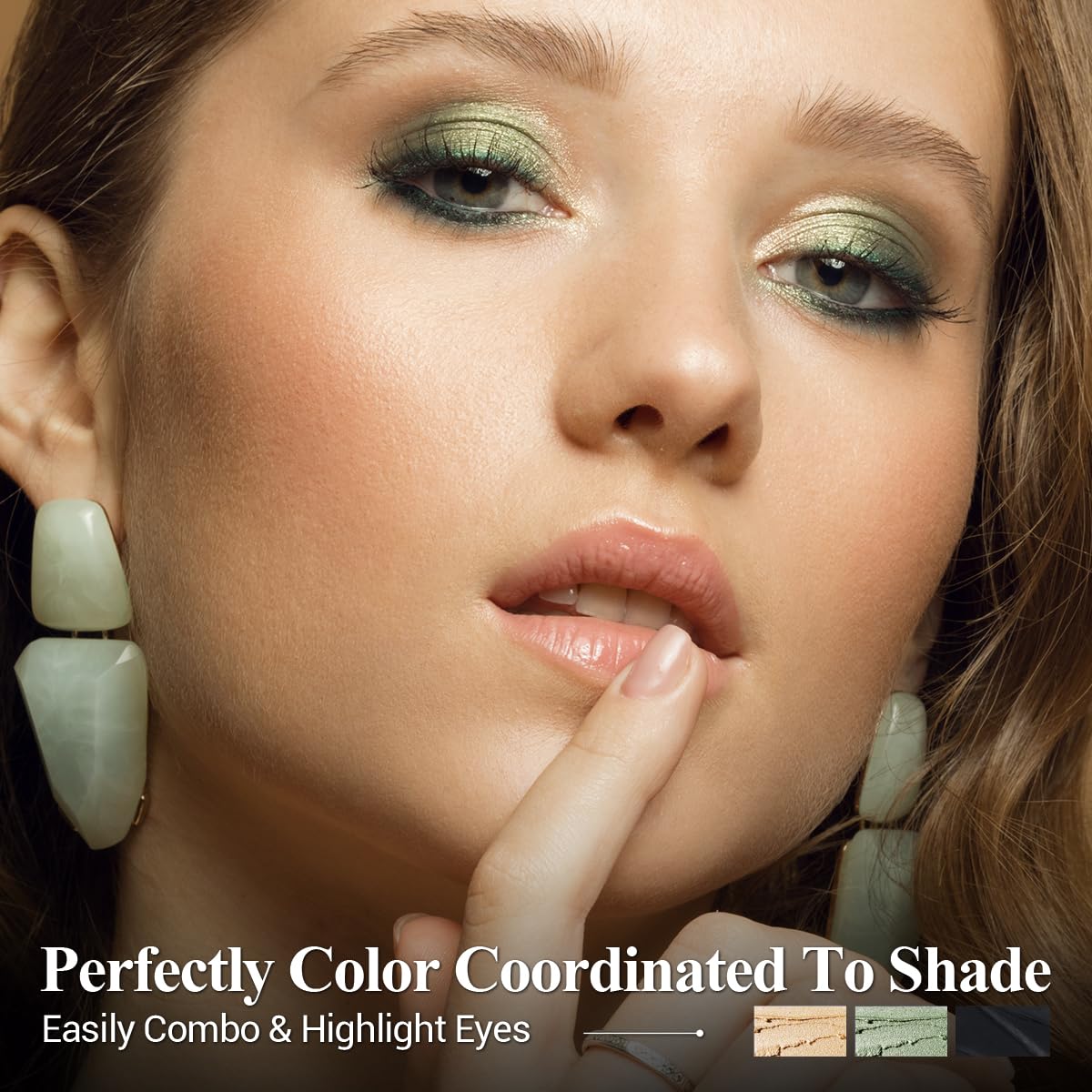 FIREFLIES LIGHT Eyeshadow Stick Makeup 6PCS Set, Green Metallic Shimmer Matte Cream Eye Shadow Eyeliner Brightener Pencil Crayon - FIREFLIES LIGHT