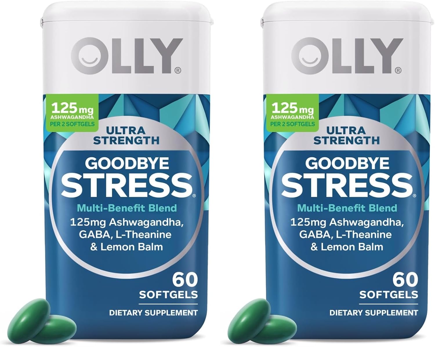 OLLY Ultra Strength Goodbye Stress Softgels, GABA, Ashwagandha, L-Theanine and Lemon Balm, Stress Relief Supplement - 60 Count (Pack of 2)