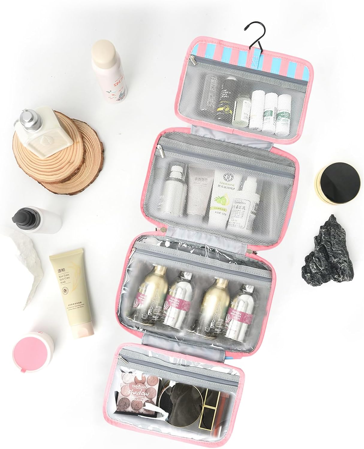 - UNIQUE DESIGN: The interior and exterior are designed with a user-friendly design, upgraded waterproofing, and transparent PVC for easy access. When unfolded, four independent compartments, separating wet and dry storage. Zippered, it provides secure storage and keeps toiletries, makeup, and accessories organized. The compartment design allows for easy viewing. An internal hanging hook makes it easy to hang and use. Multifunctional design makes it durable and practical