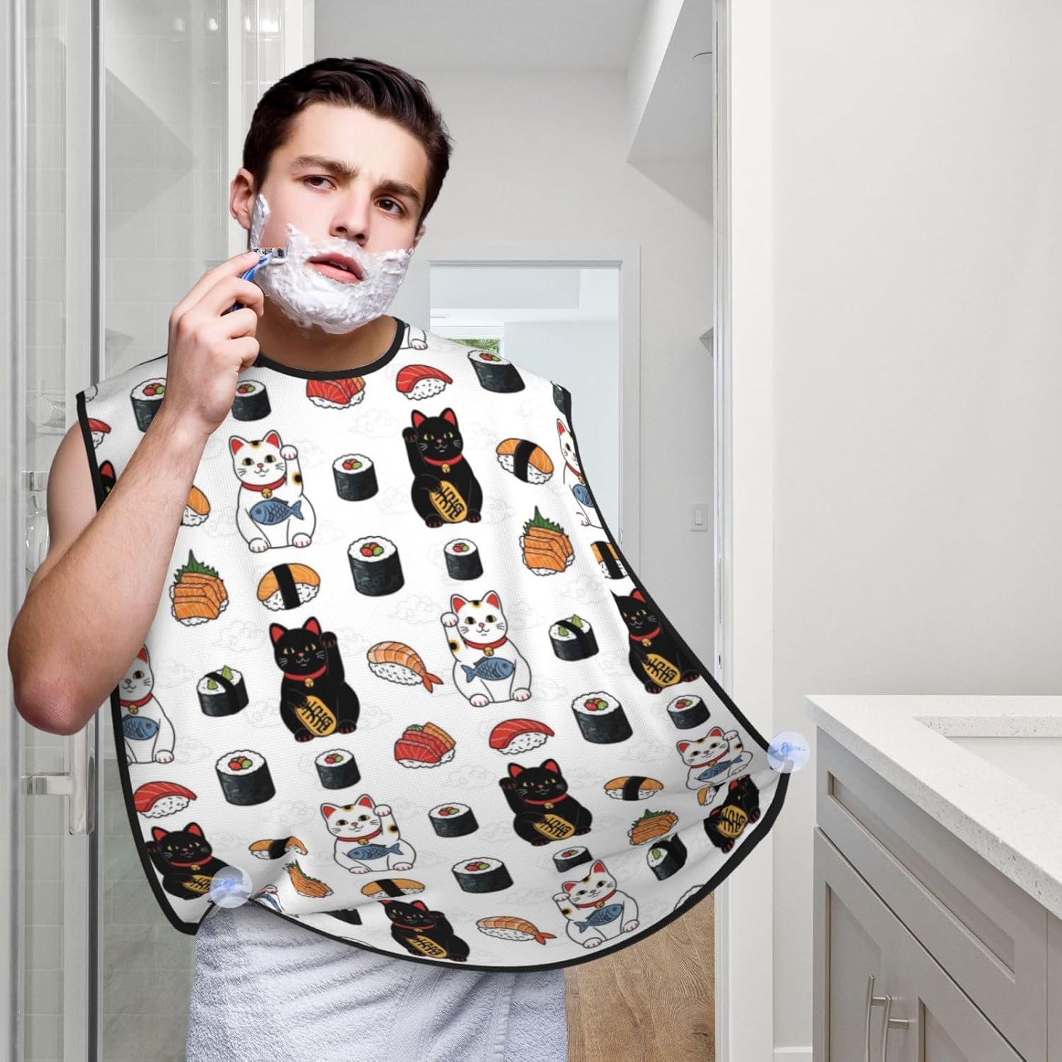 Men's Beard Maintenance Apron, Waterproof & Easy Clean, Japanese Sushi and Lucky Cat