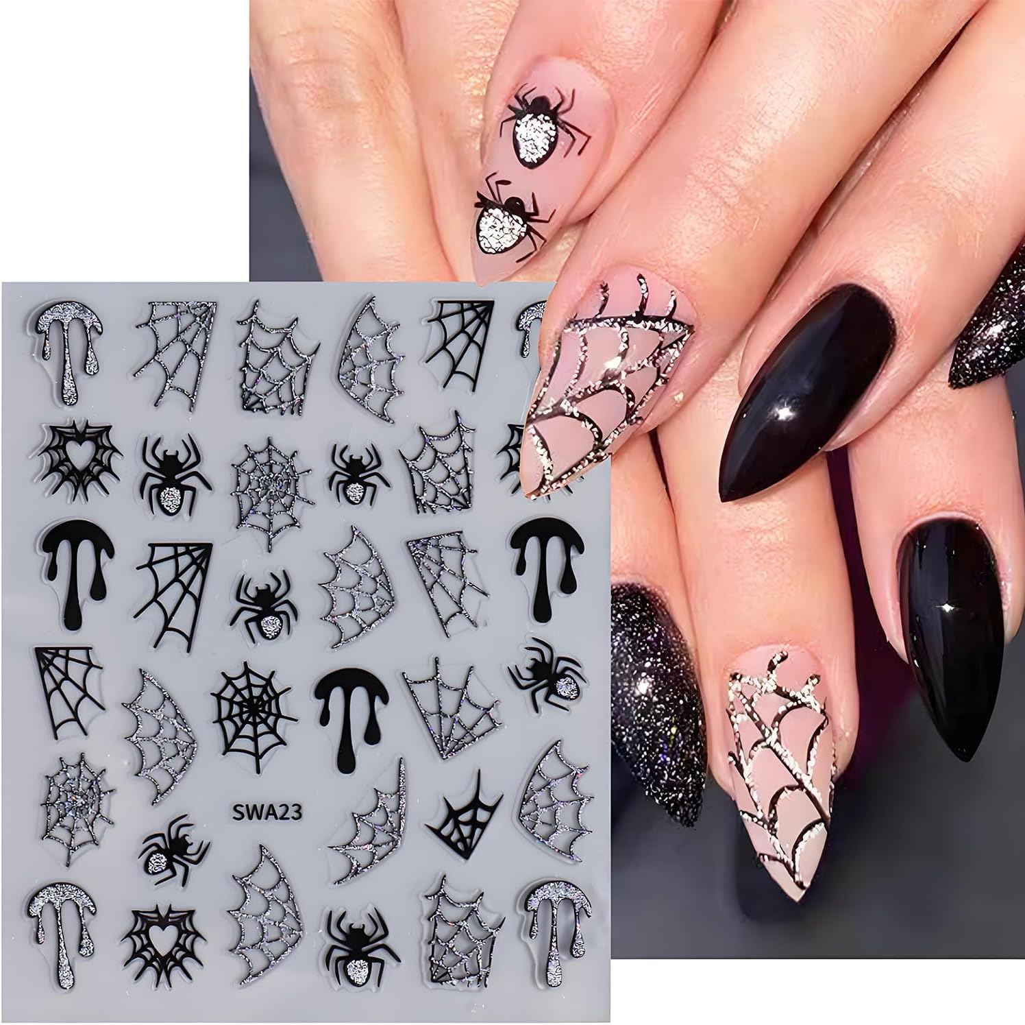 - 【High-Quality Material】Our glitter spider web Halloween nail art stickers made of high quality materials, not limited to any skin, and safe to use. Perfect for all nail types, these decals are a must-have for anyone seeking to create stunning nails.