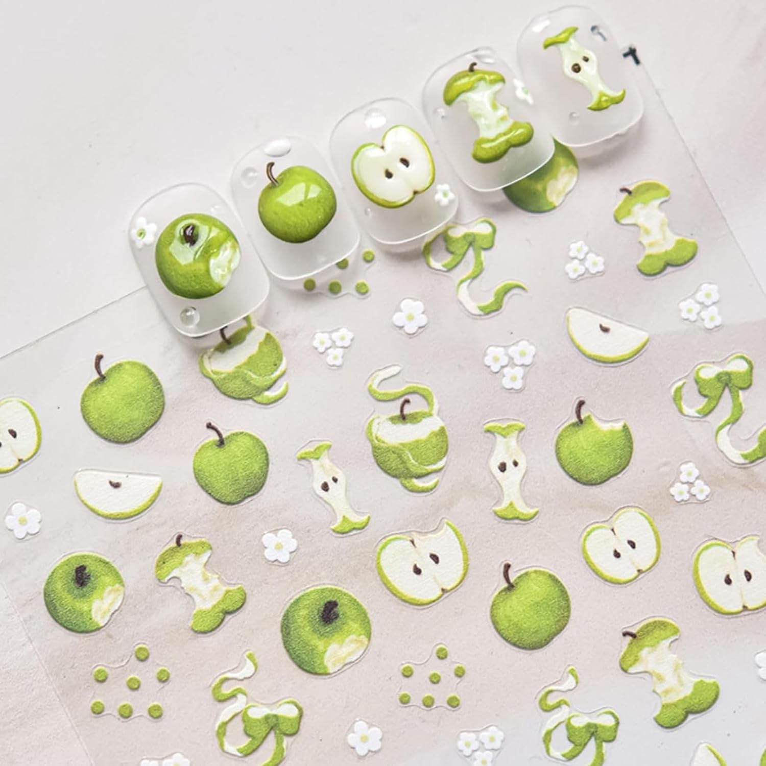 - Quantity:You will get 1 sheet apple nail art stickers decals for nail art,cute green apple flowers nail stickers, 3D self adhesive nail design which can offer you multiple choices, meet your nail decoration needs