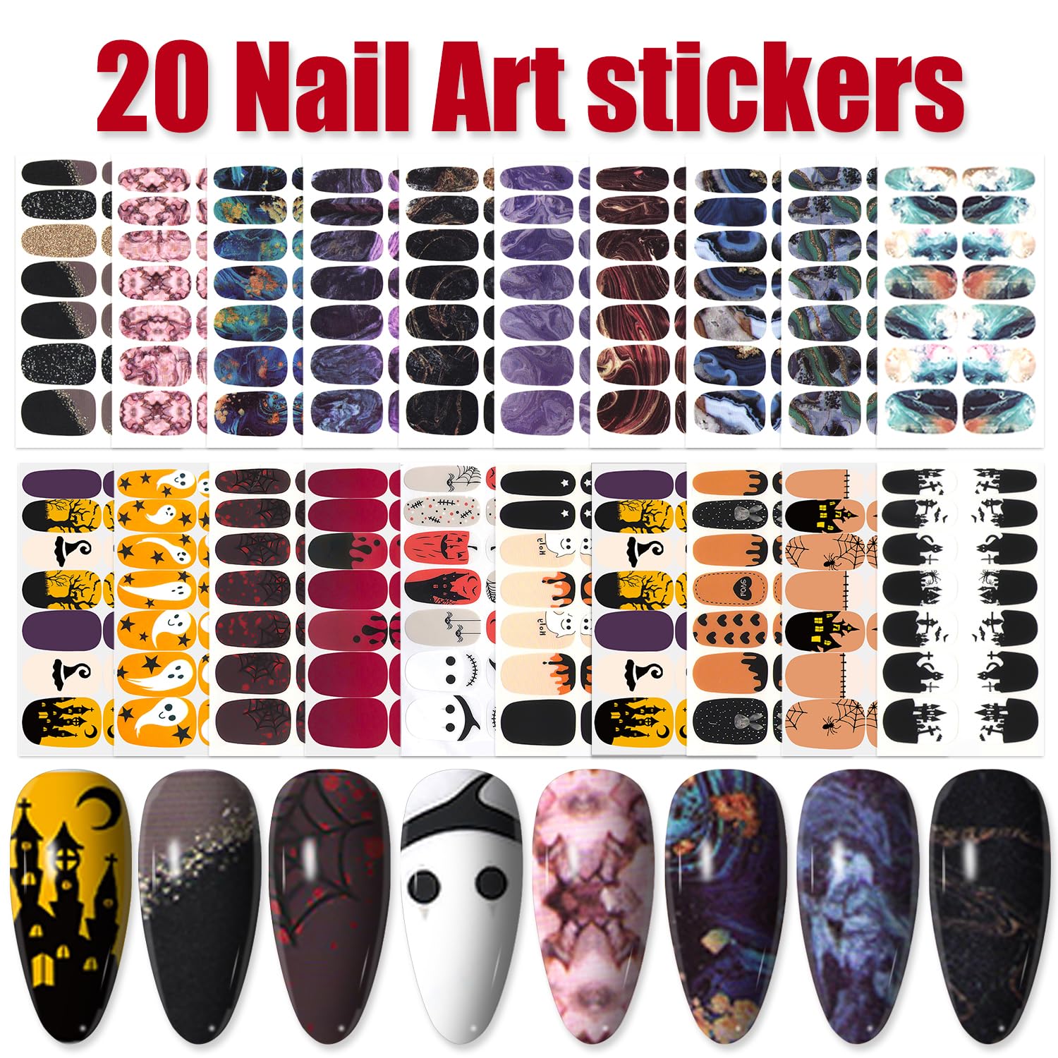 - PLENTY HALLOWEEN DEISGNS: It is 20 sheets Halloween nail stickers set, each sheet is with different designs, include elements of pumpkin Bat Ghost Witch Spider. Adorable and delicate ,each sheet is perfectly designed to correspond to the Halloween ,that make you be more attractive in the special festival.