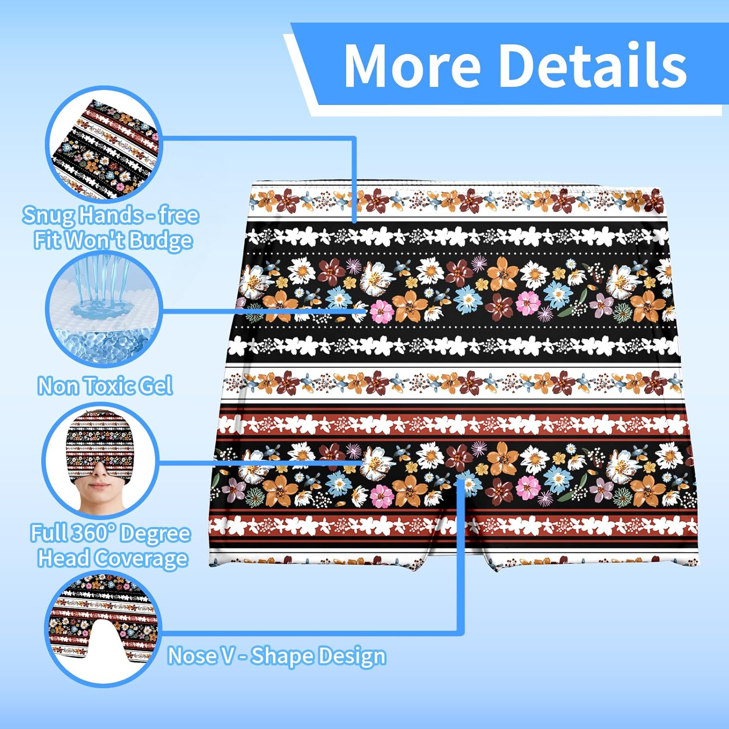 Migraine Relief Cap,Headache Relieve Cap,Black Flowers Reusable Gel Ice Head Wrap Cap for Tension,Stress,Hangover & Puffy Eyes.