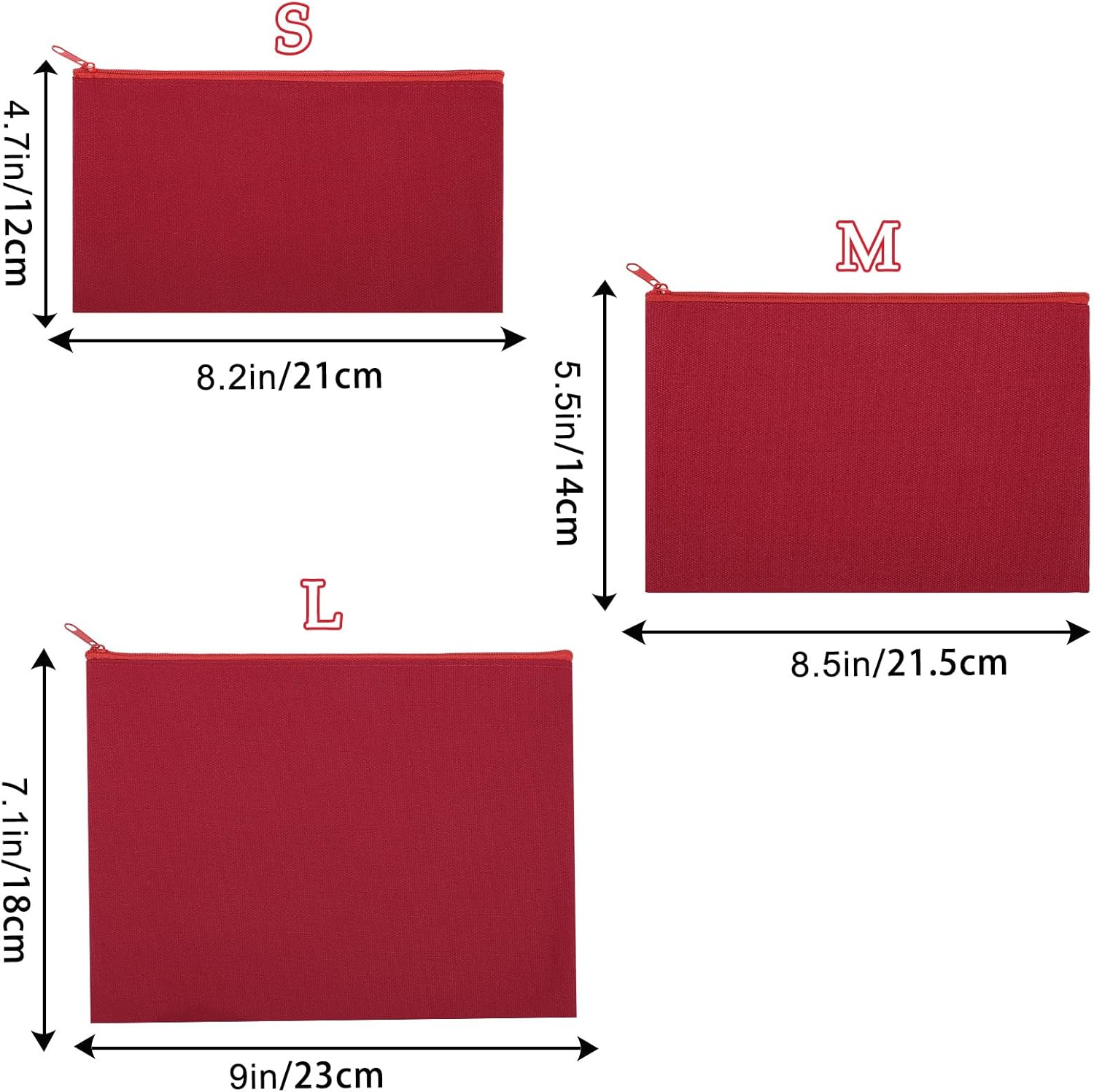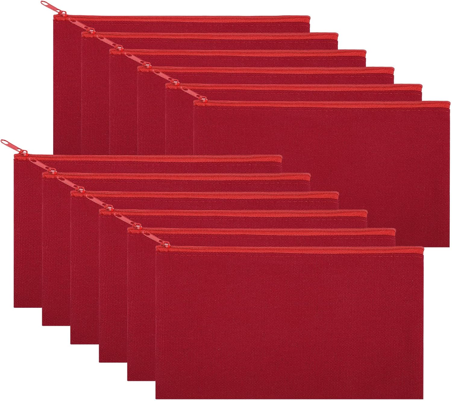 12 Pieces Cotton Canvas Makeup Bag, Multipurpose Cosmetic Bag with Zipper Travel Toiletry Pouch, Blank DIY Craft Bag (Red, S)