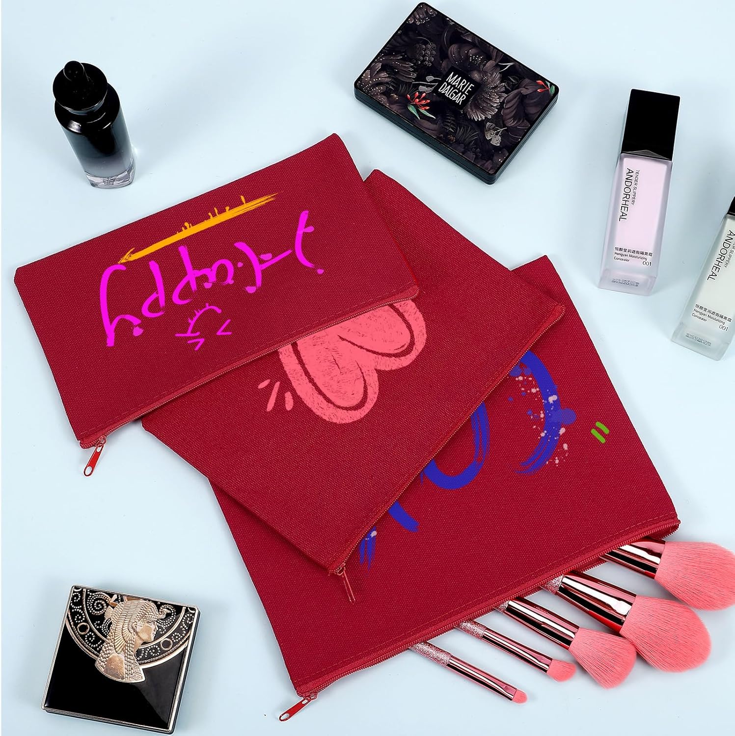 12 Pieces Cotton Canvas Makeup Bag, Multipurpose Cosmetic Bag with Zipper Travel Toiletry Pouch, Blank DIY Craft Bag (Red, L)