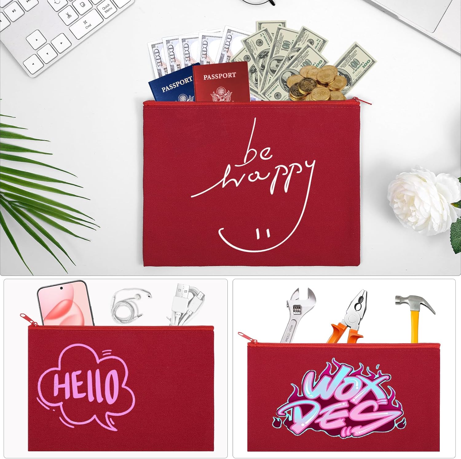 - Multipurpose: It's great to storage or organizer office supplies, bills, stationery, makeup, jewelry, USB cables, travel necessities, passport, gift and other small items. It can be used as cosmetic bag, cellphone case, coin purse, bill bag, gift bag, or travel organizer, etc.