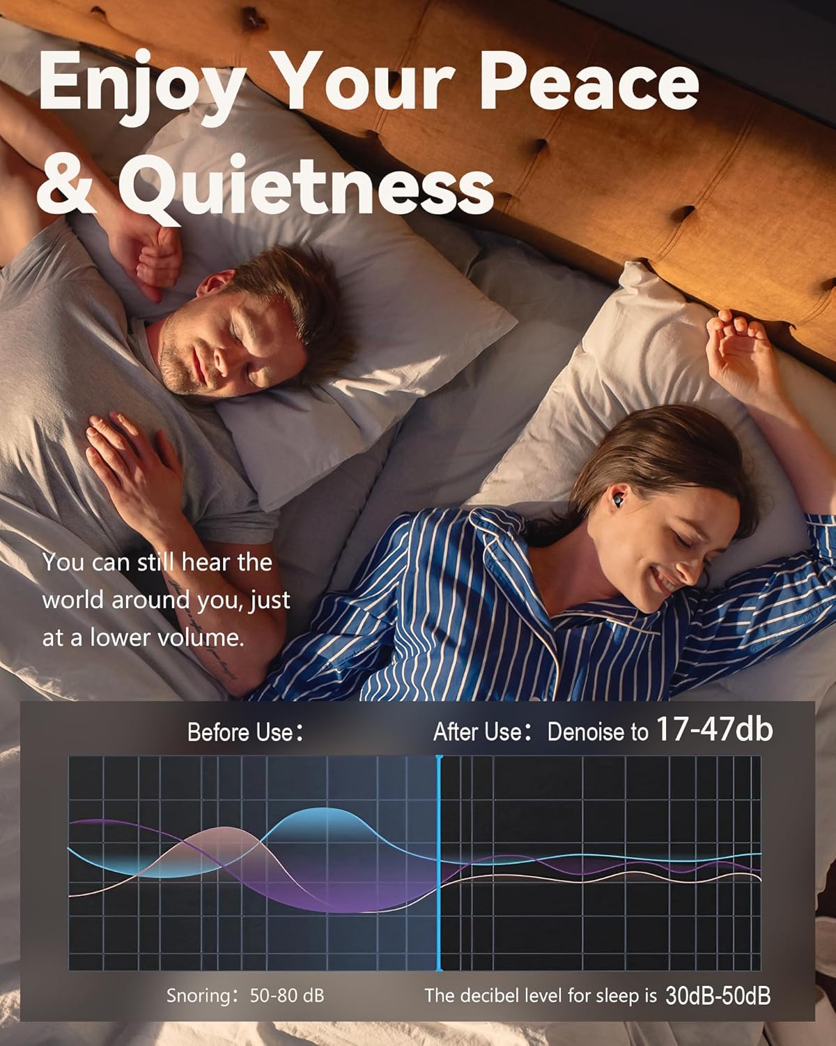 - Safe, Reusable and Washable: The earplugs are made of super soft food-grade silicone material, which do not stick to dust and have a delicate touch, with good elasticity and memory function, and the ear plugs for sleeping noise cancelling can be pulled at will without deformation.A one-time purchase with great value for money!