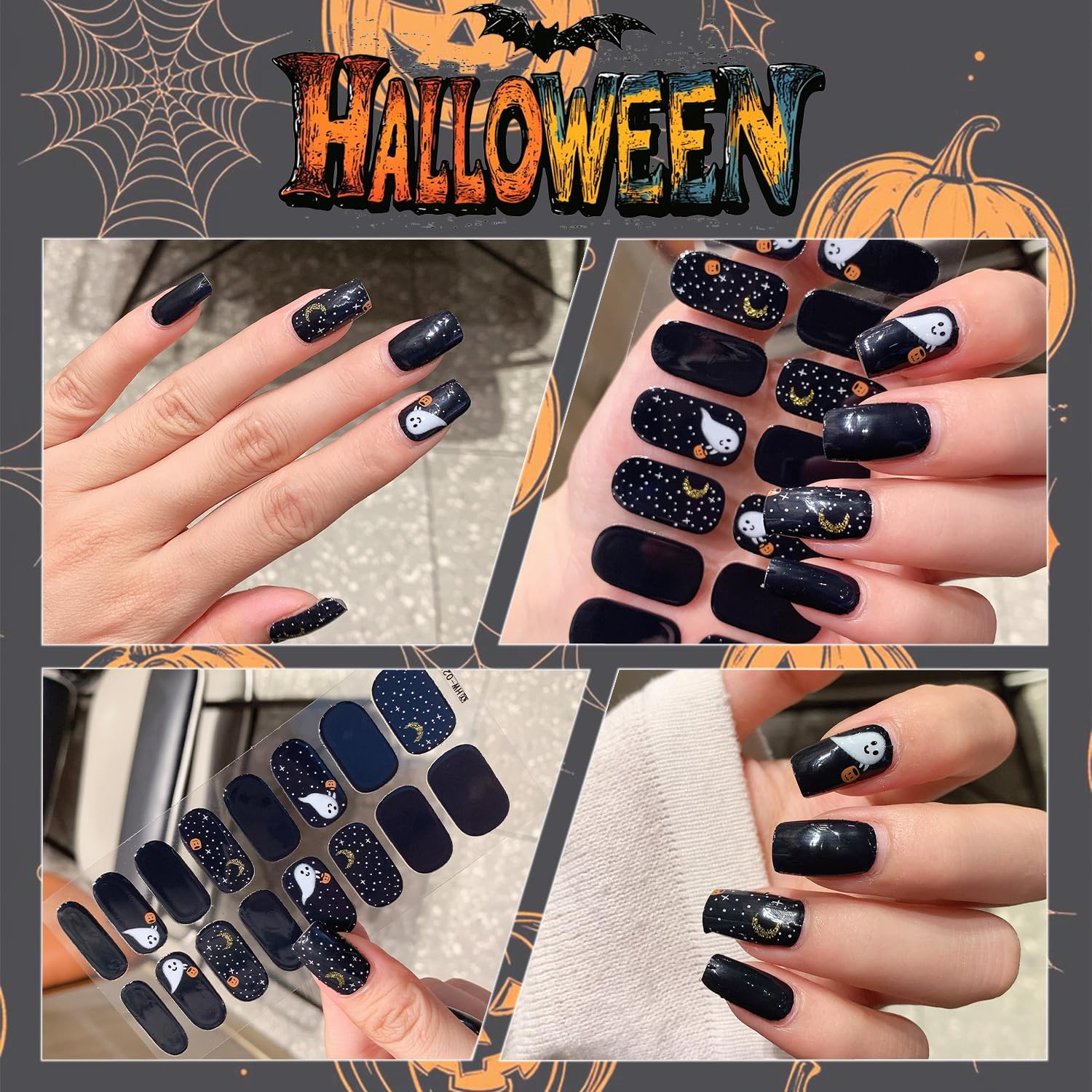 - Halloween Nail Wraps Stickers Set: You will receive 6 sheets of beautiful self-adhesive ghost nail polish stickers and 2 pieces of fingernail files, each sheet contains 16 pieces of nail polish stickers in different sizes, a variety of colors and designs for you to choose