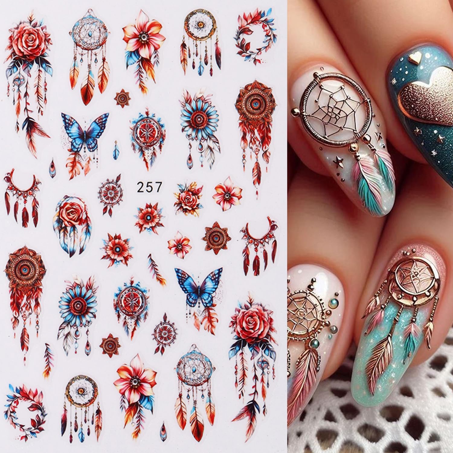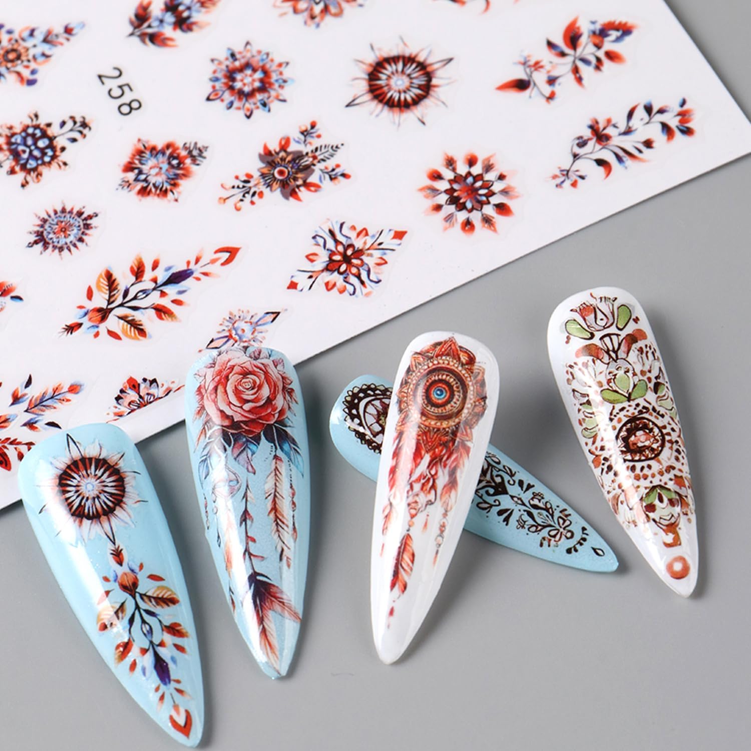 - Easy to Use: Use tweezers to remove the design from the Bohemia nail sticker and stick on your nail or fake nails. You can also cover the pattern with a coating to make the stickers last longer