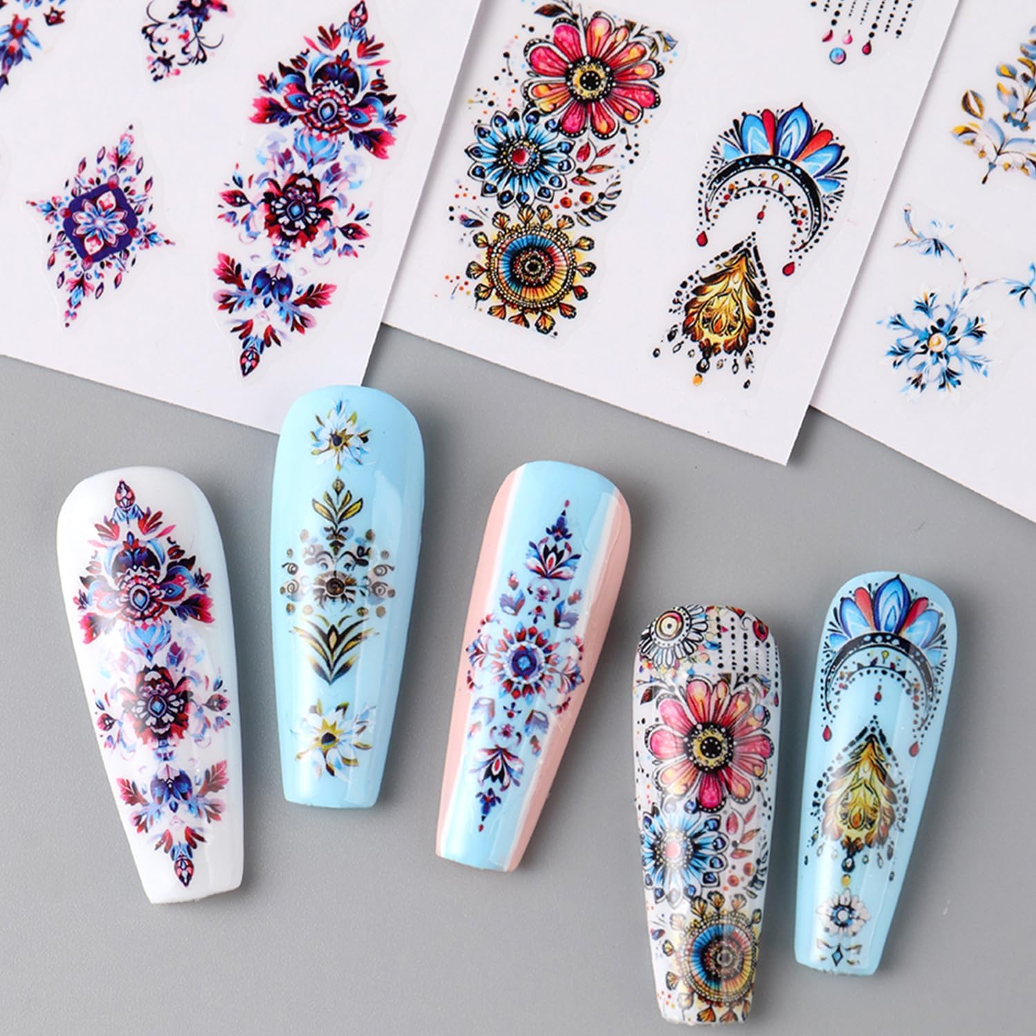 - Quantity: You will get 6 sheets of Bohemia nail art stickers, not easy to fall off or fade, can easily create a variety of themed nail art