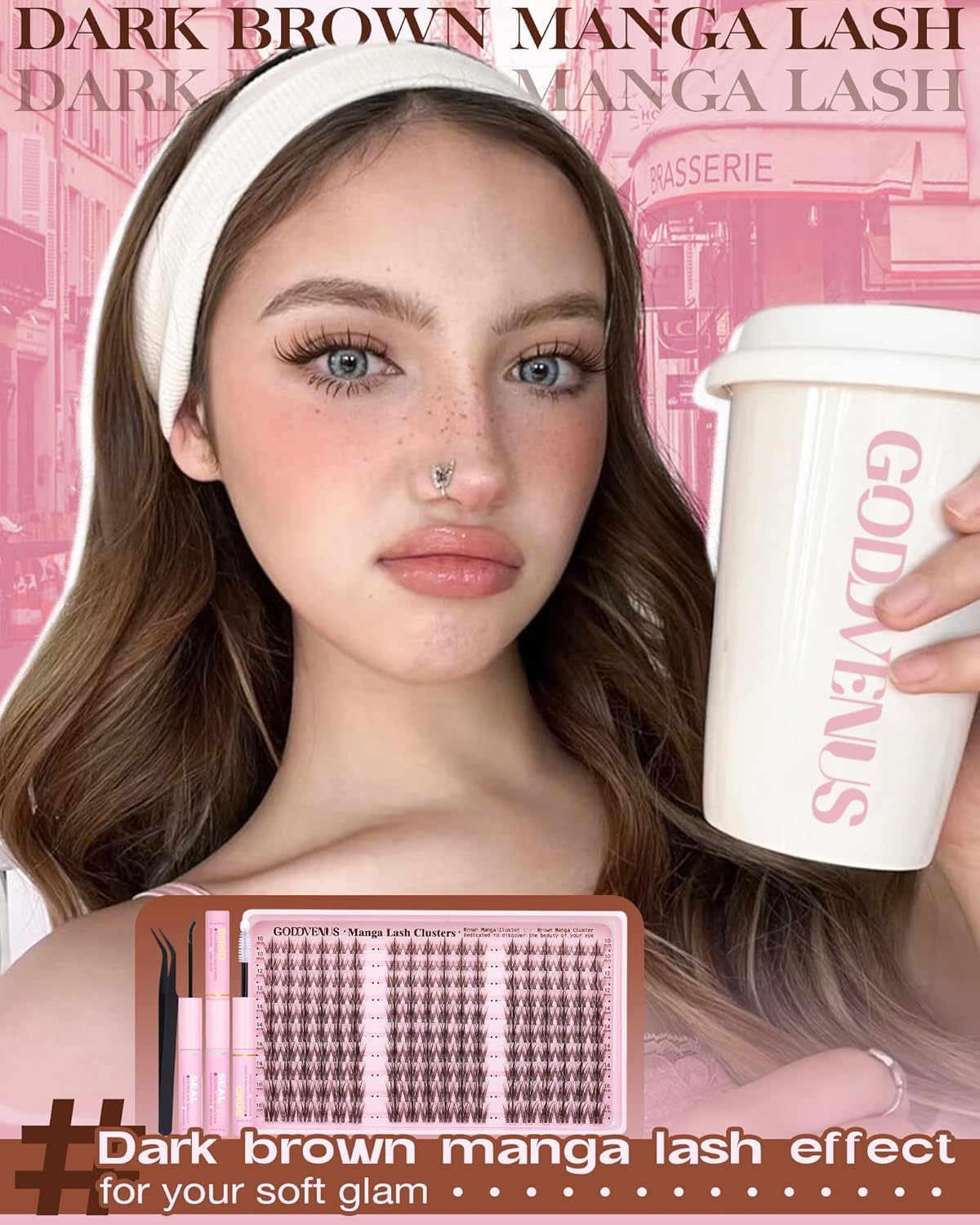 - DIY Lash Cluster Kit for Natural Brown Manga Look: Dark brown lash fibers create soft, defined eyes without the harshness of black cluster lashes – cute for achieving the trending "manga eye" aesthetic with a subtle, everyday glam finish.