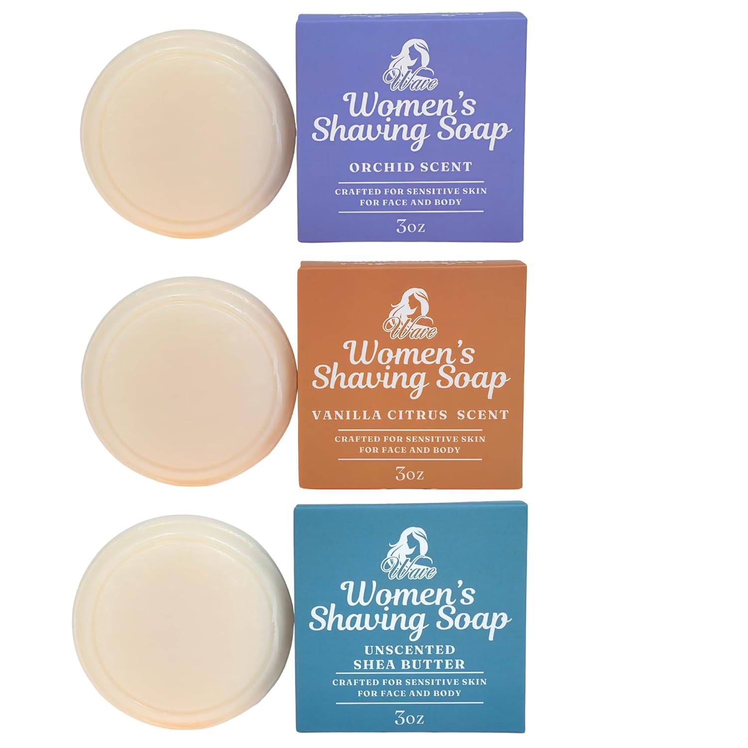 G.B.S Women’s Shaving Soap 3 Pack – Shea Butter Infused Fragrance-Free, Orchid, and Vanilla Citrus – Moisturizing Bar for Sensitive Skin, Long-Lasting, Smooth Shave for Legs & Body