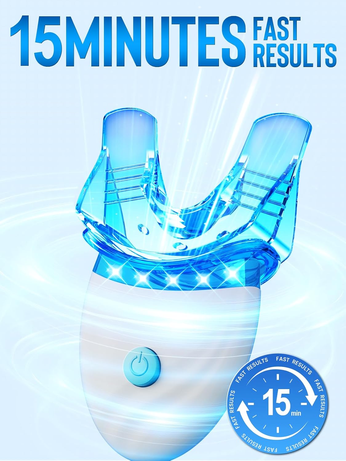 - Get better anytime, anywhere: Equipped with LED acceleration light, it accelerates teeth whitening through blue light, achieving faster results, and you can see the results in 10 minutes. The BPA-free silicone tray ensures a secure, comfortable fit.