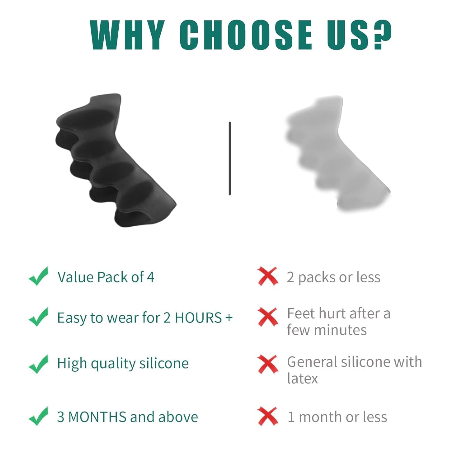 4 Pcs Silicone Toe Spacers – Yoga Toe Separators for Toe Straightening & Relaxation | Correct Overlapping Toes, Bunions, Hammer Toe | Toe Support toe separators for Women & Men (Black, 3.98)